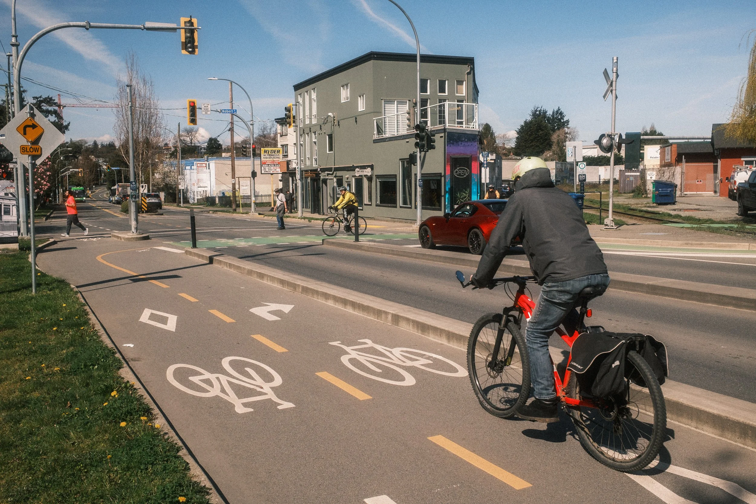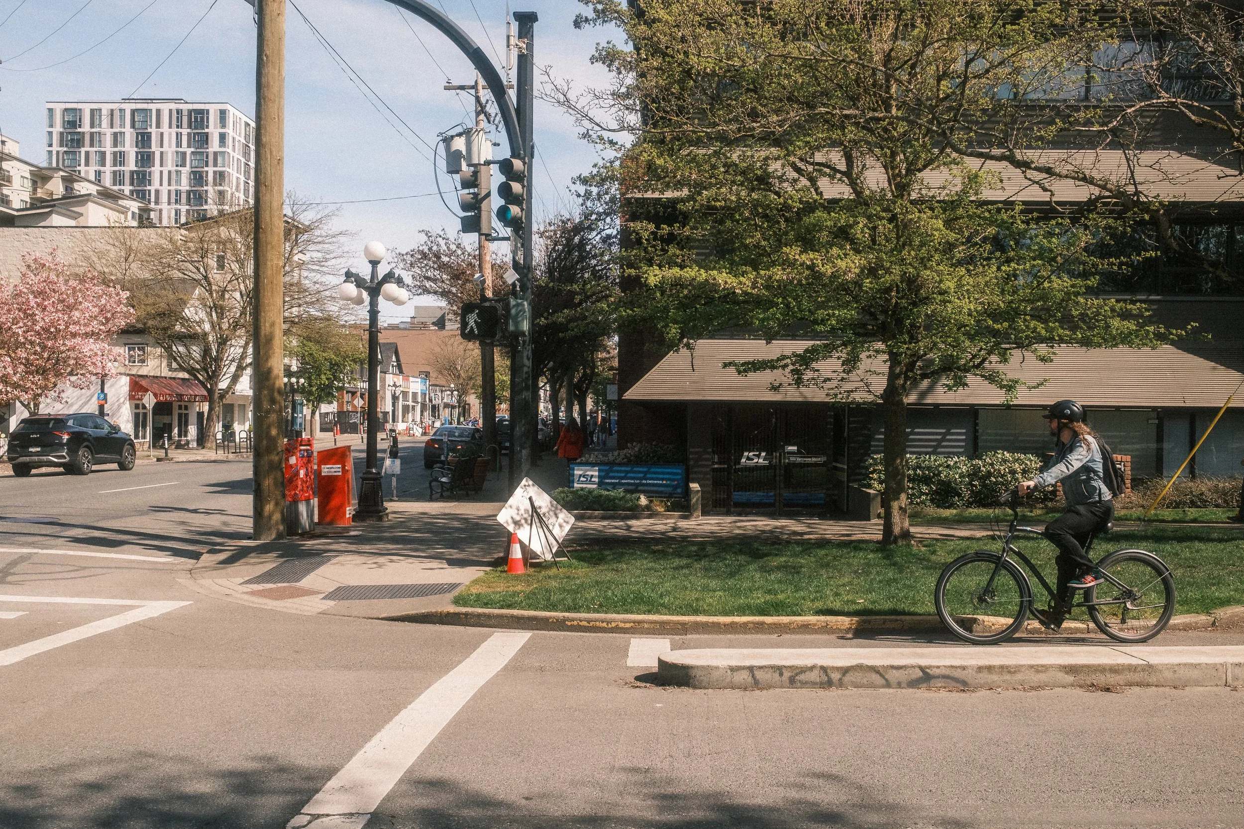 Once in the city, I took a little loop of some of our (ISL Engineering) projects with the City, starting at the E&N Regional Trail connection that added a new bike crossing and protected bike lane or pathway along Kimta Road to extend the facility into Downtown…