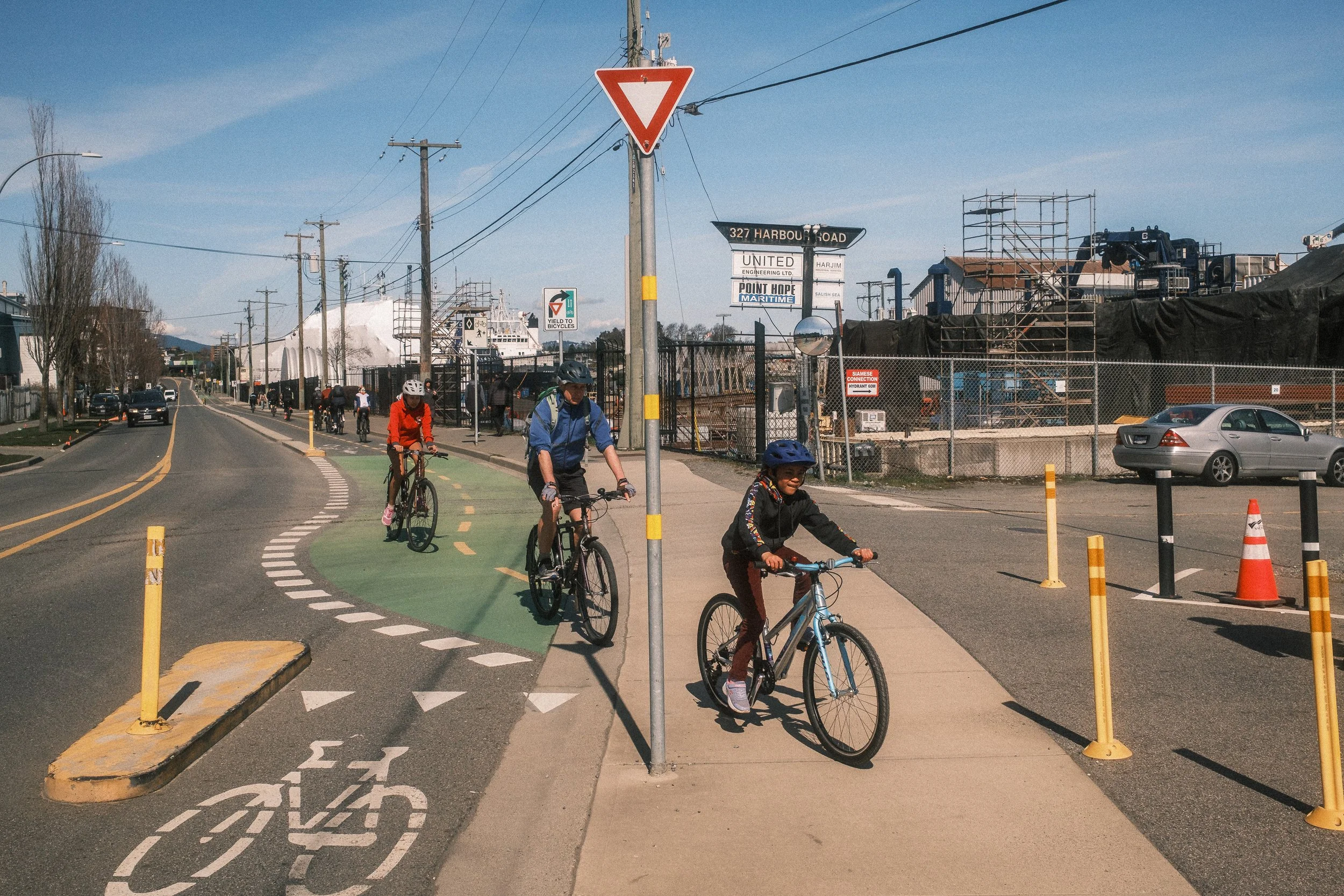 I forgot to take photos on Kimta Road itself, but there are a few shots in the next video… Kimta feeds you into the Johnson Street Bridge and Downtown beyond it. at the bridge, you can also head the other way up Harbour Road towards the Galloping Goose Regional Trail… Harbour Road is always one of the busiest bike routes in my experience with both the Galloping Goose and Lochside Regional Trail feeding people on bicycles into it heading to Downtown, or of course leaving Downtown…